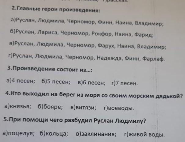 2. а)Руслан, Людмила, Черномор, Финн, Наина, Владимир.