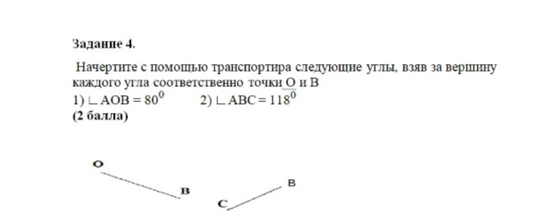 Начертите с помощью транспортира следующие углы,взяв за вершину каждого угла соответственно точки O и B.