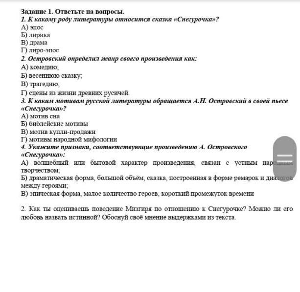 Во-вторых, он пытался купить ее чувства. Снегурочка долго не отвечала Мизгирю взаимностью. Он обещает ей драгоценности: «Люби меня, Снегурочка! Дарами бесценными красу твою осыплю бесценную». Мизгирь считает, что любовь можно купить. Когда хоть один из пары придерживается такого мнения, любовь обречена.