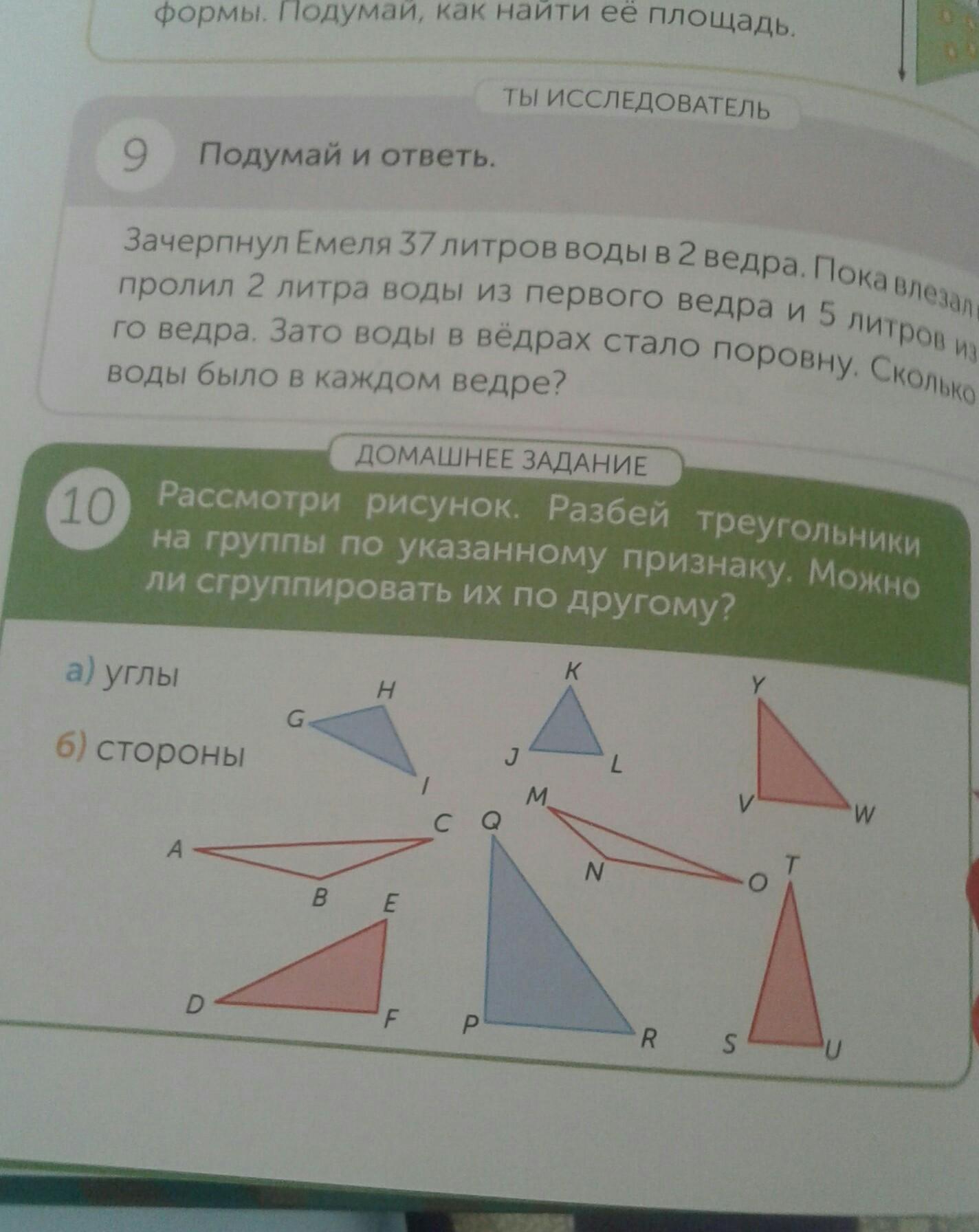 Рассмотри рисунок и ответь треугольник на группы по указанному признаку можно ли группировать их по-другому