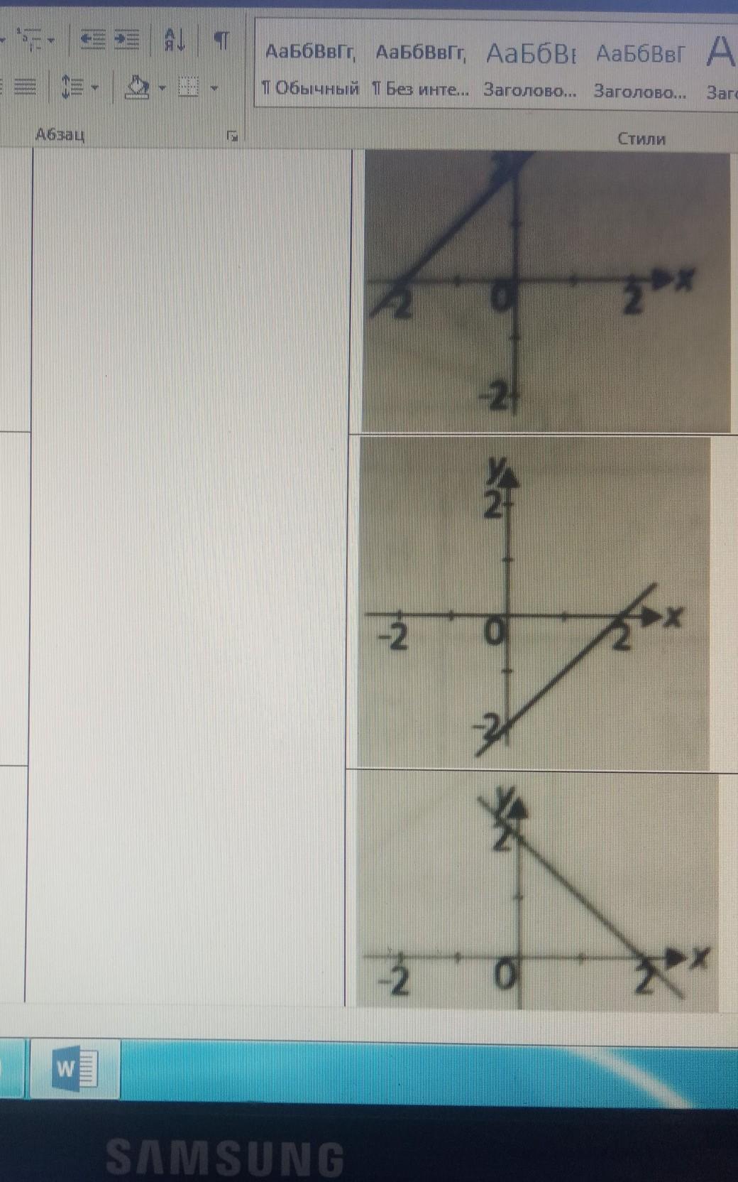 Установите соответствие между уравнениями прямых и изображениями в системе координат: