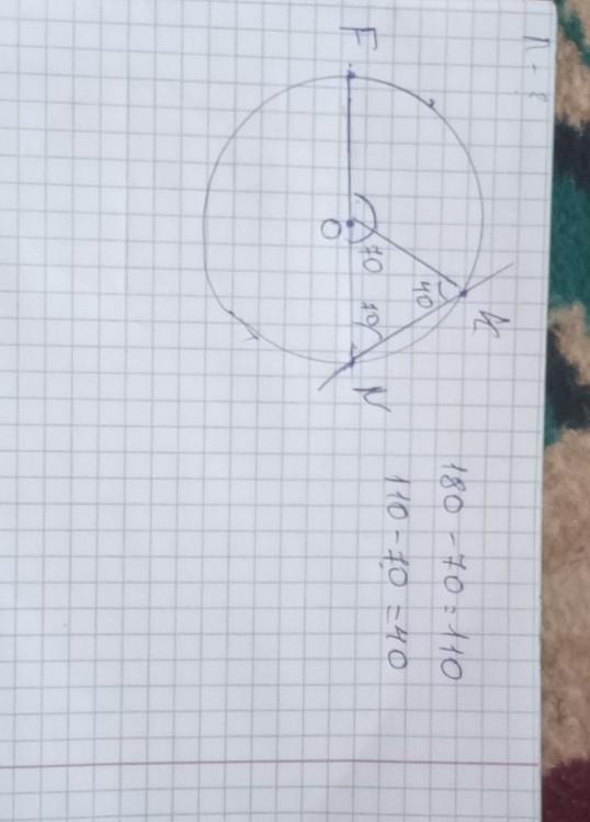 FN - диаметр окружности с цетром в точке О,KN - хорда. угол KON= 70°.Найди углы треугольника FNK.