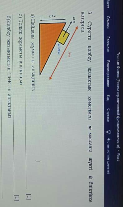 Суретте көлбеу жазықтық көмегімен m массалы жүкті h биіктігіне көтерген​