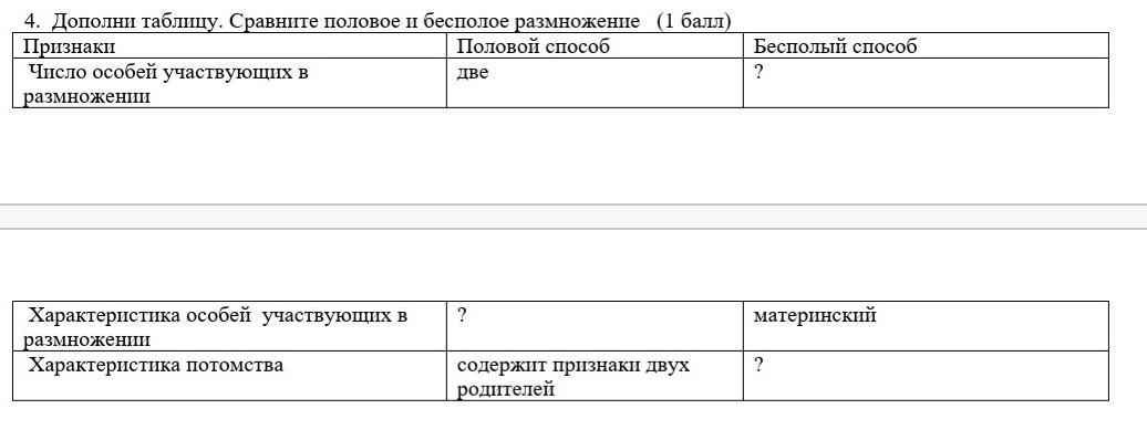 даполните таблицу.сравните половое и бесполовое размнодение ​