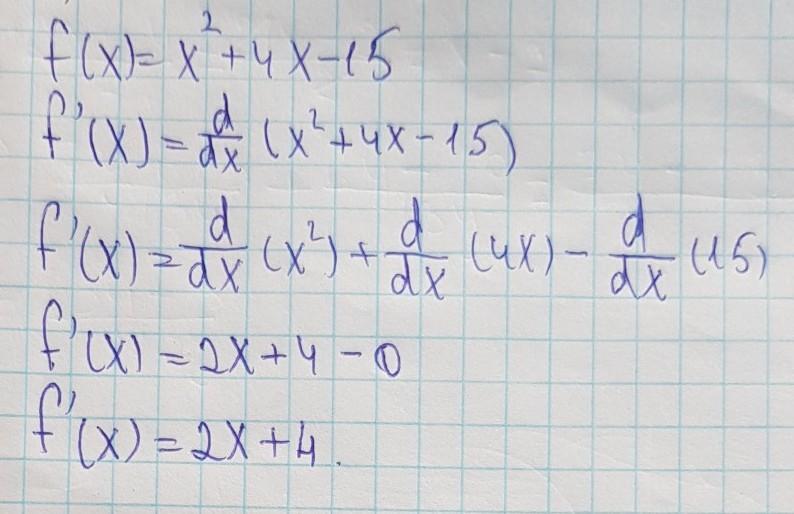 э по алгебре найдите производные функции f(x)=x^2+4x-15 запишите уравнения касательной функции при x0=1