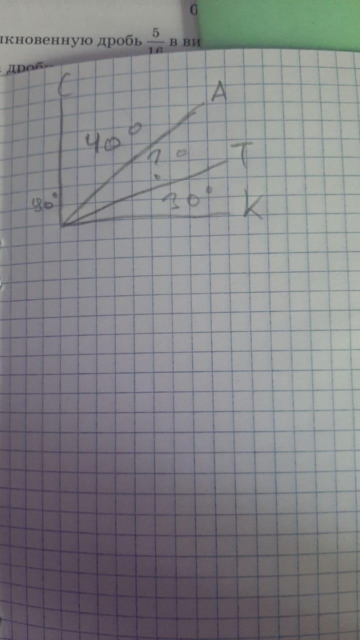 90-40-30=20 градусов сам большой угол равен 90 гарадусом