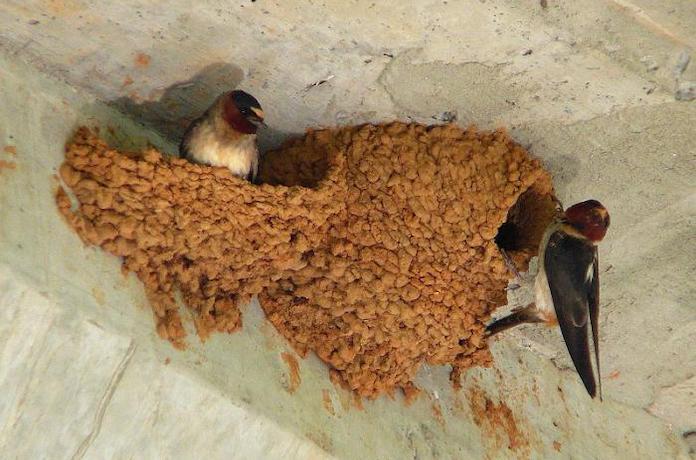 Разные виды ласточек обустраивают гнезда по-своему. Так, у касатки (деревенская ласточка) гнездышко напоминает четвертинку чаши. Полукруглую стенку птица прикрепляет к поверхности стены или крыши. Гнездо ласточка строит таких размеров, чтобы поместился выводок и она сама.