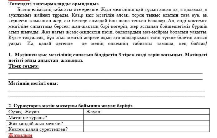 «Ал ,енді көктемге мезгіліне сипаттама берсек, жан-жақтың бәрі көгеріп, жер астынан бейшешегіміз бүршік атып шығады»