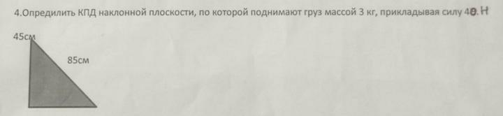 Определите КПД наклонной плоскости,по которой поднимают груз массой 3 кг,прикладывая силу 40 H
