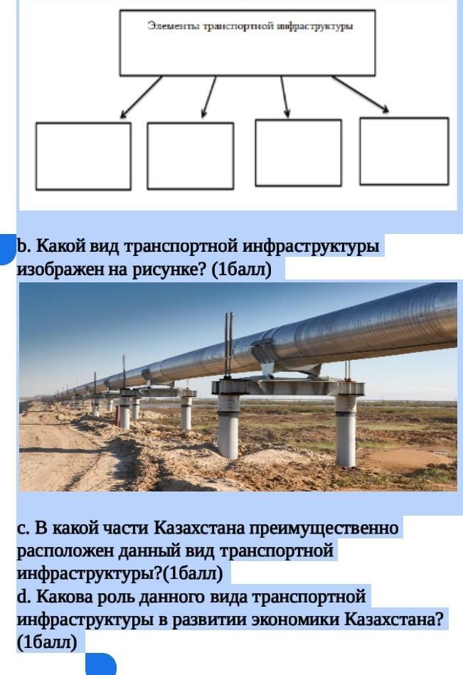 В какой части Казахстана преимущественно расположен данный вид транспортной инфраструктуры? даю 30 за все вапросы