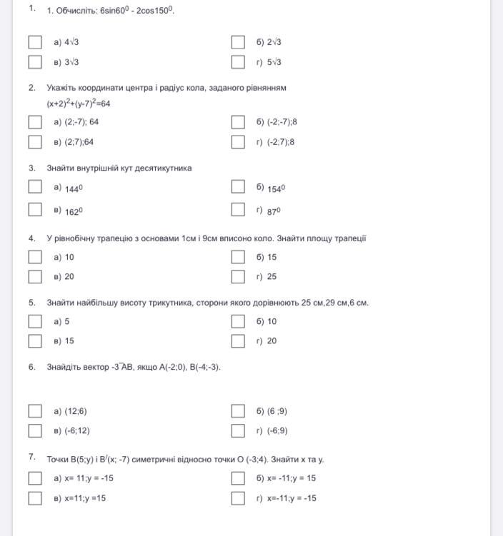 Підсумкова контрольна робота. Потрібно з розв’язком