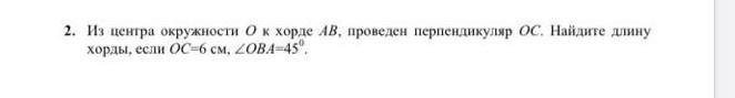 из центра окружности о к хорде AB проведён перпендикуляр AD c Найдите длину хорды если AC равно 6 см а угол abo равен 45 градусов