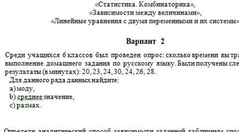 среди учащихся шестых классов был проведён опрос Сколько времени вы тратите на выполнение домашнего задания по математике были получены результаты минусы 20 23 24 30 24 26 28 данного ряда данные Найдите моду среднее значение размах