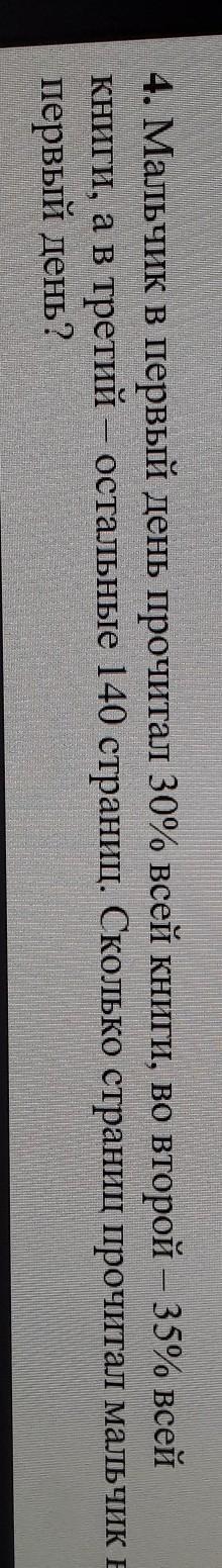 Чтобы найти, сколько страниц мальчик прочитал в первый день, нужно умножить 400 на 30%(на 0.3).
