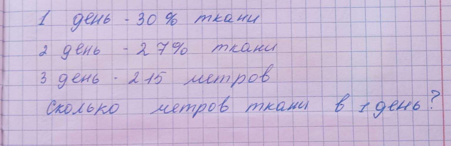 30*500/100=150м, за первый день мы получили 150 метров ткани