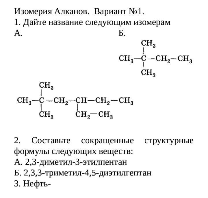 А. 2,3-диметил, 4-этилгексан Б) 2,3-диметилбутан