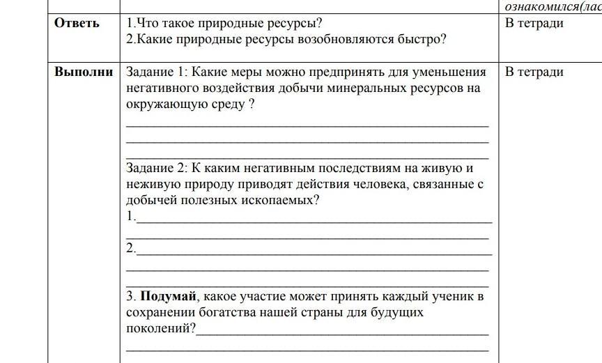 1)Какие меры можно придпринять для уменьшения неготивного воздействия добычи ментальных ресурсов на окружающую среду помогите пожалуйста сделать эти задания плиз по картинке