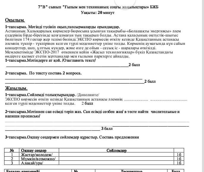 2 тап: Астана қаласының оңтүстік шығыс бөлігінен неше гектор бөлінді?Қазақстандағы қандай шаралары өткізілген?