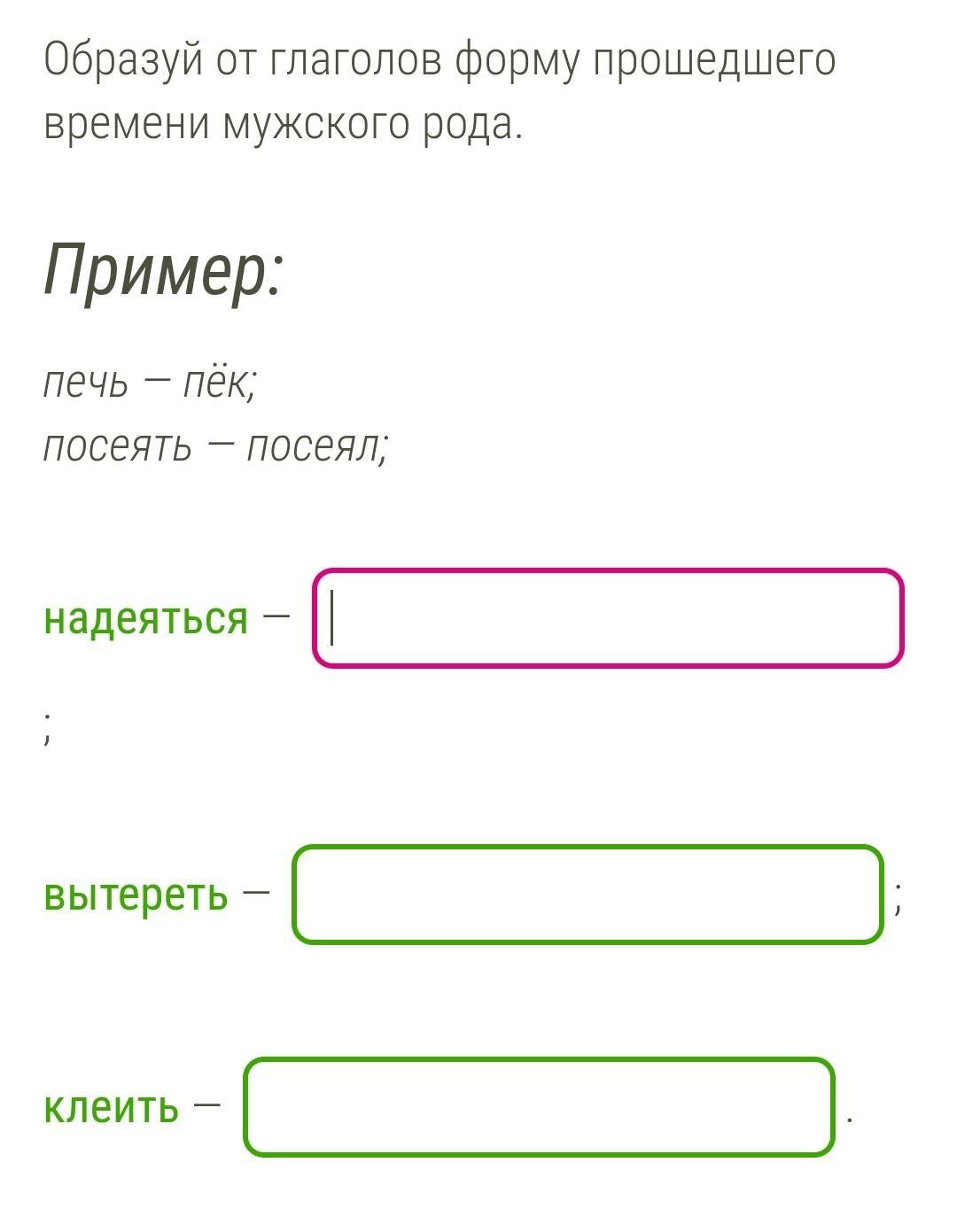 надеяться-надеялся; вытереть-вытирал; клеить-клеил