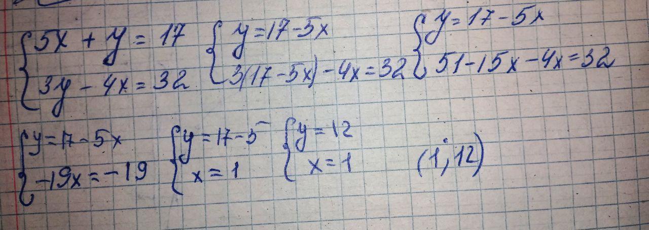 рівнянь 5х + у = 17 і 3у – 4х = 32.