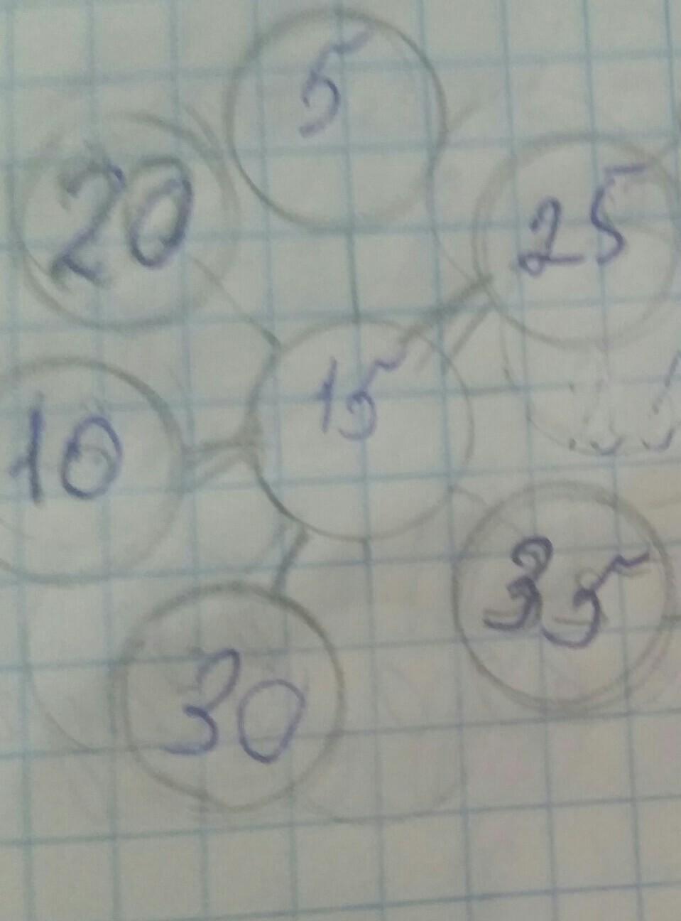 Ответ:25, 15, 10, 20, 30, 5, 35.