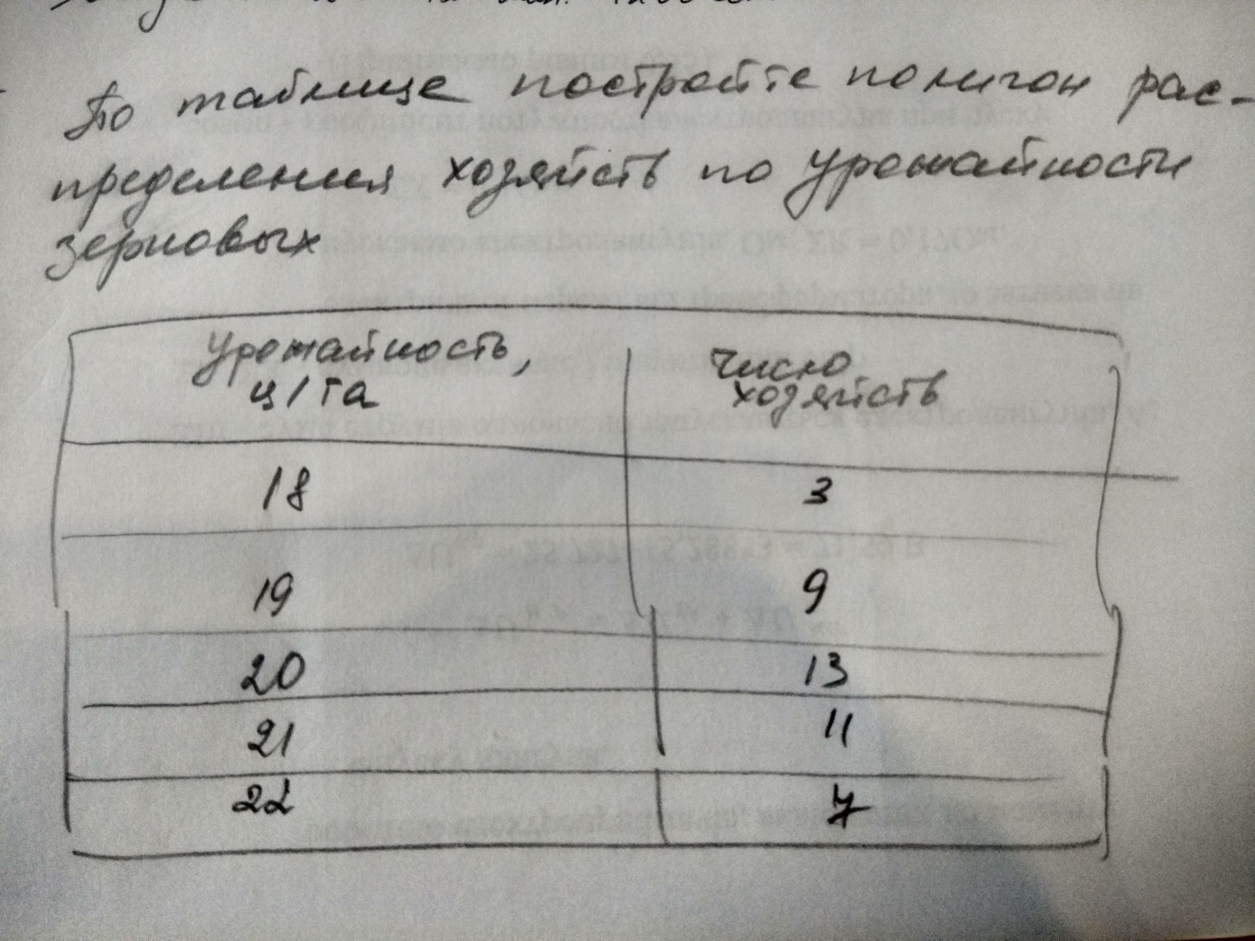 По таблице постройте полигон распределения хозяйств по урожайности зерновых.