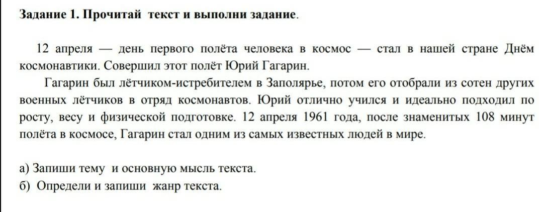 Ответ:№а; 1)тема:день косманавтики
