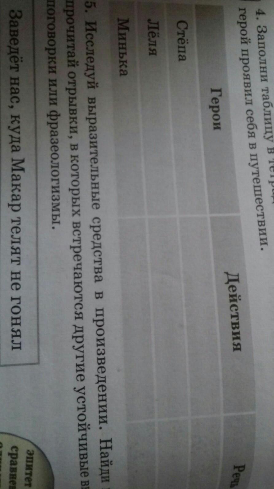 таблицу в тетради Составьте устный рассказ о том как каждый герой проявляет себя в путешествие Стёпа Лёля и минька дам 100баллов
