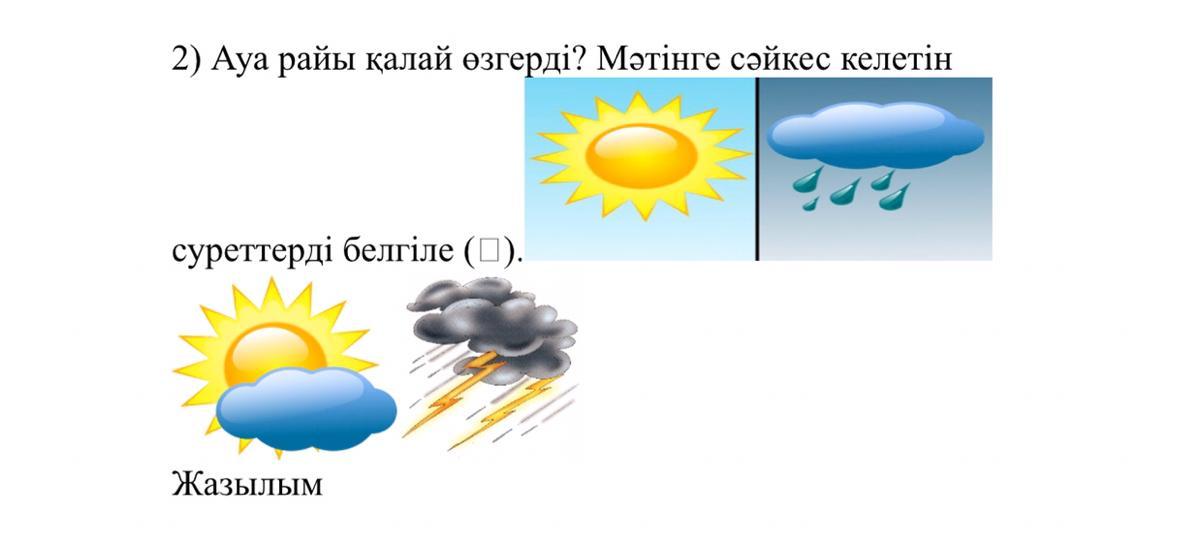Ауа райы мезгілге қарай,климаттық деңгейге қарай өзгереді.Мысалы полюс суық жар болғандықтан ол жақта ауа райы қатты ыстық болмайды.Ауа райы мезгілге қарай өзгереді мысалы жазда ауа райы ыстық болады қыста суық күзде жаңбыр жауады.Солайша ауа райы өзгереді