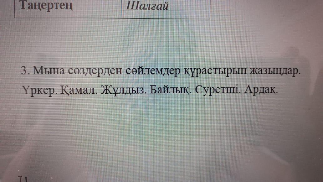 3)Маған Үркер жұлдызына қараған қатты ұнайды.Настя екеуіміз құмнан қамал салвп ойнадық.Жұлдыстар аспанда өте көп.Адамның өміріндегі ең маңыздысы байлық емес.Мен өскенде суретші болғым келеді.-Ардақты менің ұстазым,мен сізге алғыс айтқым келеді!