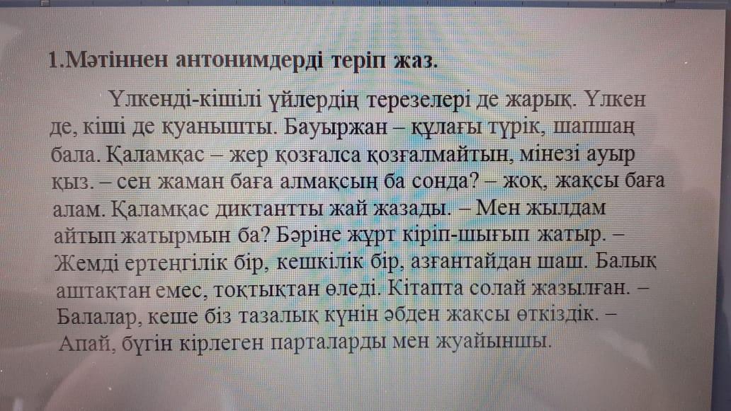 Ответ:1)Үлкен-кіші,жаман-жақсы,кіріп-шығып,аштық-тоқтық,таза-кір,шапшаң-жай.