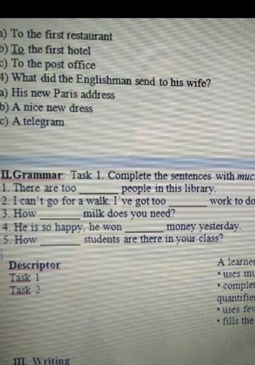 Ответ:1. Much, 2. Many, 3. Much, 4. A lot of, 5. Many.