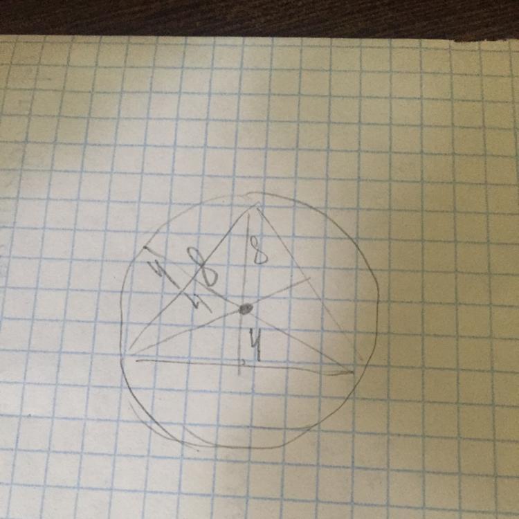 Высота 12, центр окружности делит 2:1 значит 8и4, радиус = 4+4=8