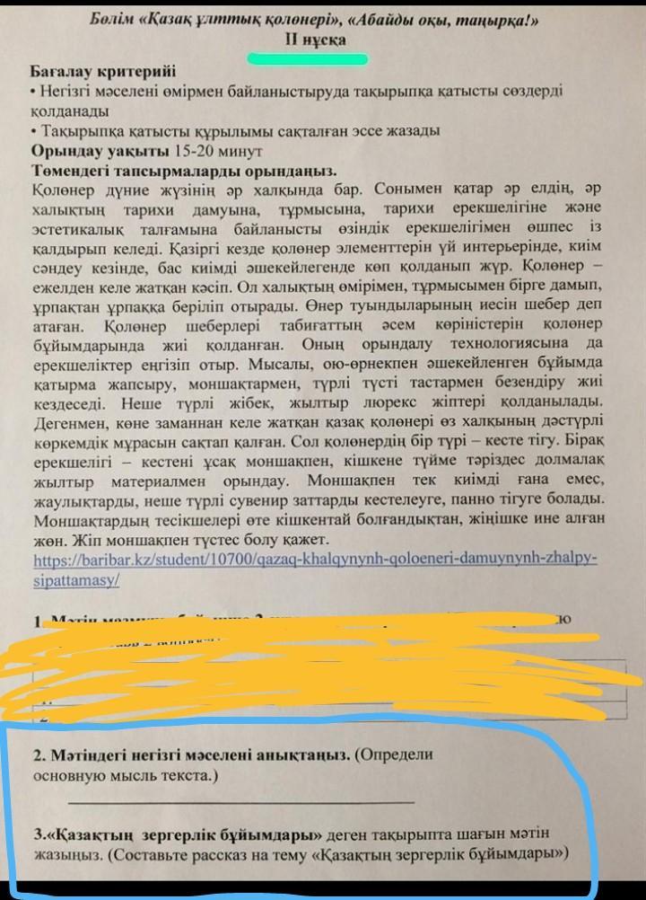 Основная мысль - Здесь говорится о ремеслах Казахстана и сейчас многие занимаются этим это для нас как искусство, в настоящее время ремесленные элементы в домашнем интерьере, одежде