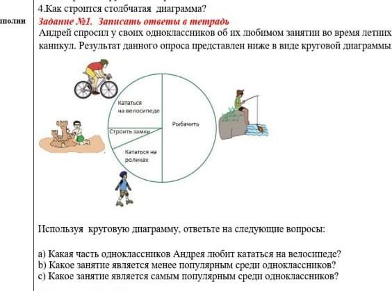андрей спросил у своих одноклассников об их любимым занятиям во время летних каникул