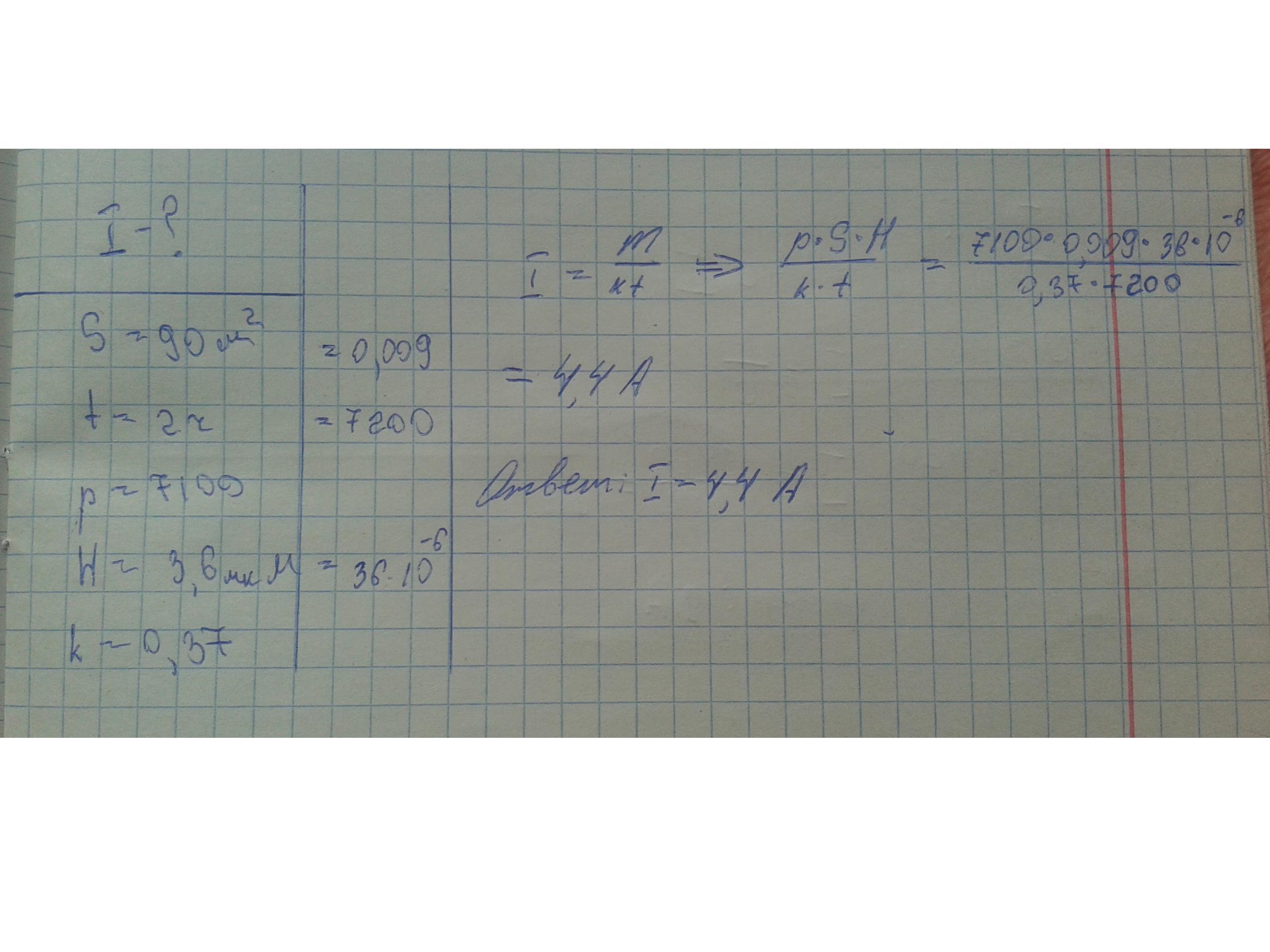 При якій силі струму проводилося хромування металевої пластинки, що має площу поверхні 90 см2, якщо за 2 години утворився шар хрому завтовшки 3,6 мкм?