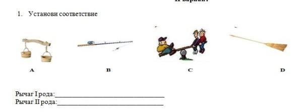 Примеры: рычаги первого рода — детские качели (перекладина), ножницы; рычаги второго рода — тачка (точка опоры — колесо), приподнимание предмета ломом движением вверх.