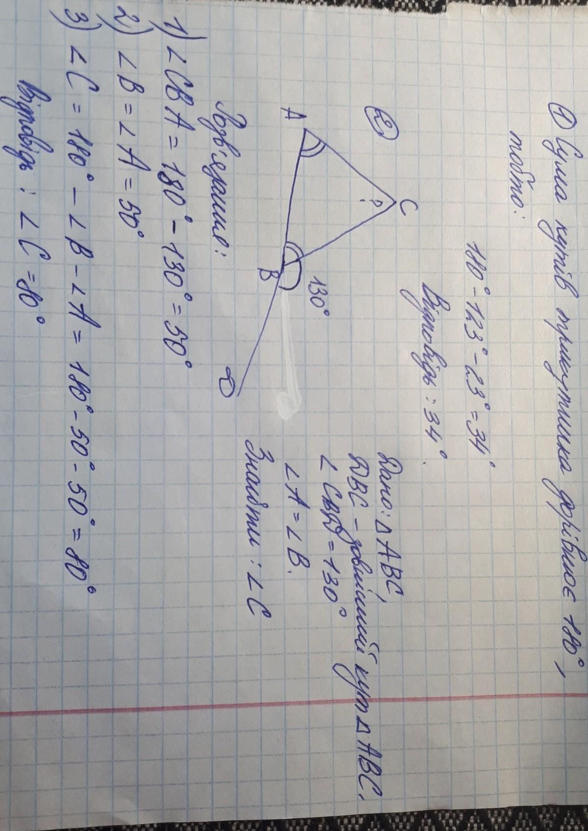 1.Знайдіть кут трикутника якщо два інші його кути дорівнюють 123° і 23°