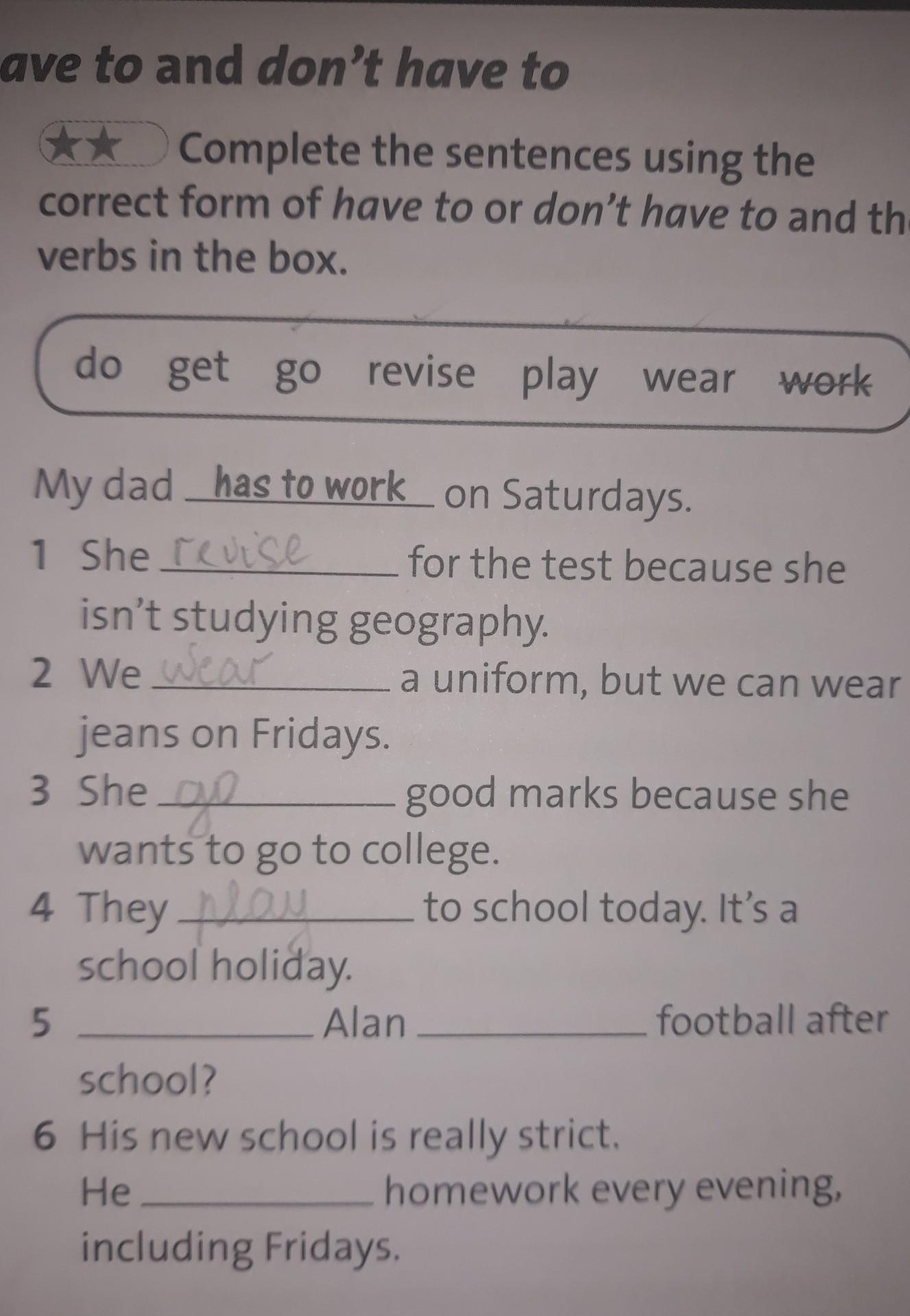 complete the sentences using the correct form of have to or don't have to and the verbs in the box.