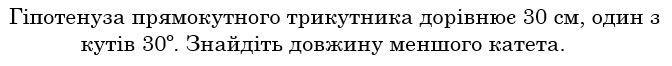 І катет який навпроти кута 30° менший і дорівнює половині гіпотенузи і дорівнює 30÷2=15 см