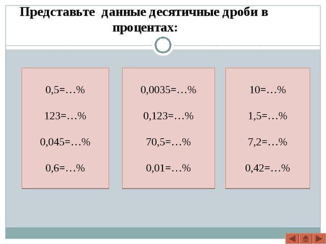 Чтобы перевести десятичную дробь в проценты нужно: умножить дробь на 100 и добавить знак процента %