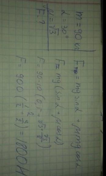 Груз массой 90 кг поднимают на высоту 8 м при помощи наклонной плоскости длиной 40 м. При этом для равномерного перемещения груза по плоскости прикладывают силу 360 Н. Каков КПД наклонной плоскости?