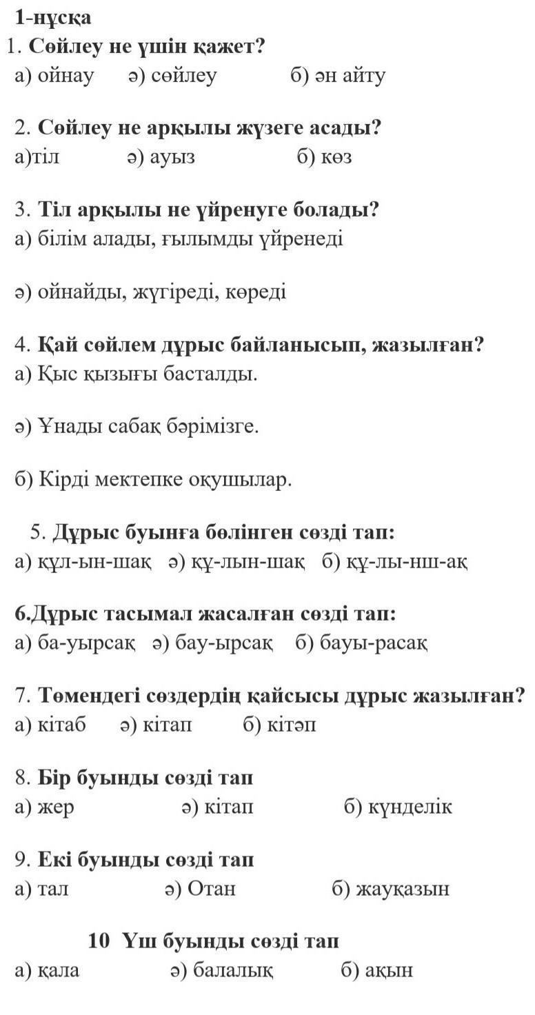 Ответ:2.а 3.а 5.ә 6.ә 7.ә 8.а.9.б 10.ә