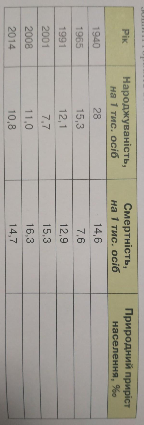 Проаналізуйте, як змінювалися показники природного приросту населення в Україні протягом зазначених у таблиці років. Заповніть таблицю та зробіть висновки.