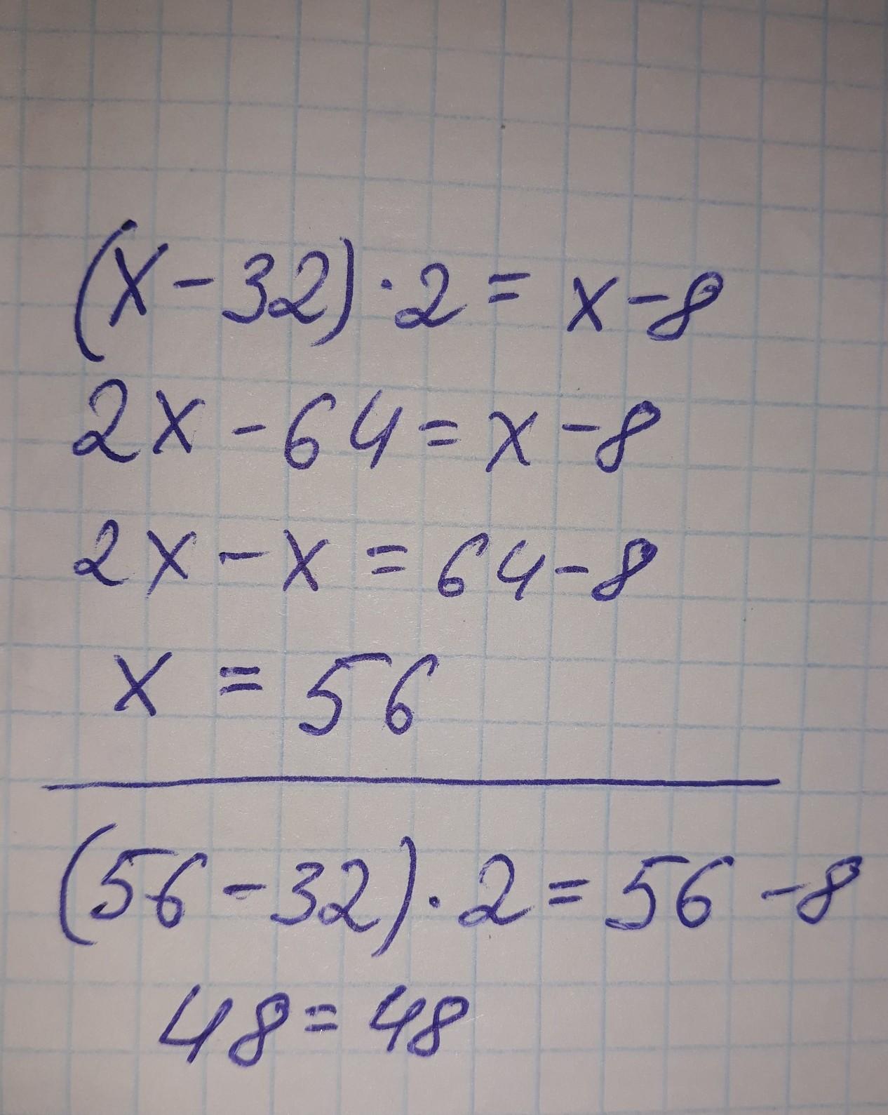 Два однакових баки були наповнені водою.Коли з першого вилили 8 л, а з другого 32 л то в першому залишилося води в 2 рази більше, ніж у другому.Скільки літрів води було в кожному баці спочатку?
