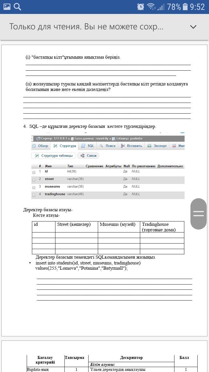 Преобразавать базу данных,созданных в SQL,в таблицу