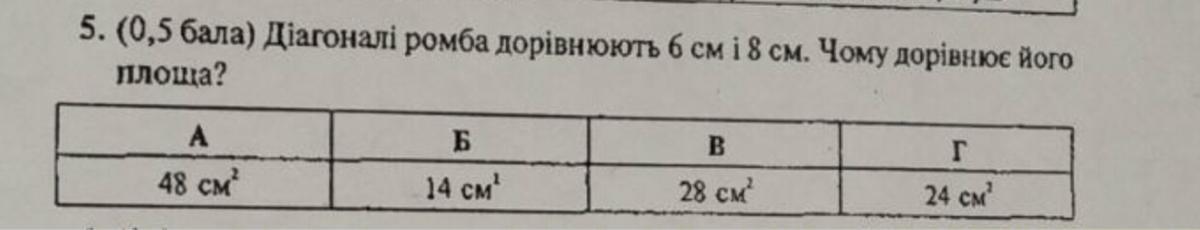 ВІДПОВІДЬ ЛИШЕ НА ОДНЕ ЗАПИТАННЯ (буквою)
