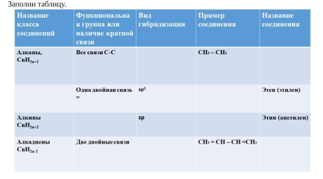Ответ:1. алканы - sp3- гибридизация. Этан.