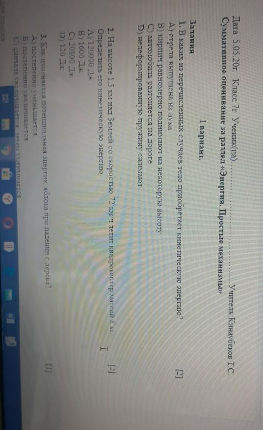 В каких из перечисленных случаев приобретает кинетическую энергию​