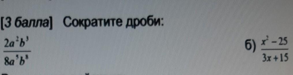 а) 2а²b³/ 8а∧5·b∧8 - степени сокращаются, 8 и 2 тоже